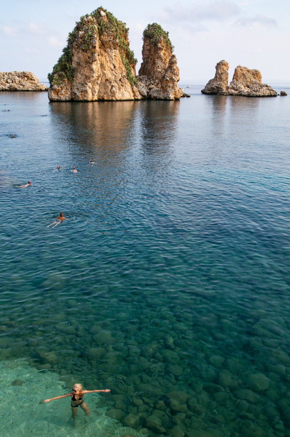 Scoppelo malo viacero pláží, kde bola tyrkysová voda ideálna na šnorchlovanie, plná rýb a dokonca som videla aj chobotnicu. Jedna z obľúbených pláží bola Castellammare del Golfo, kde sme si takto čilovali celý nasledujúci deň.
