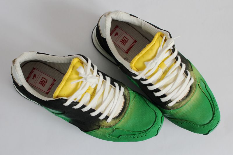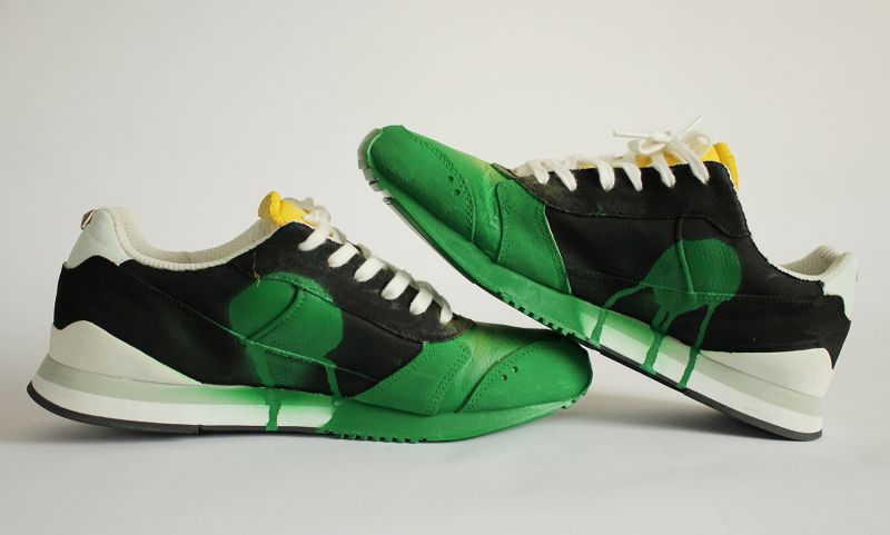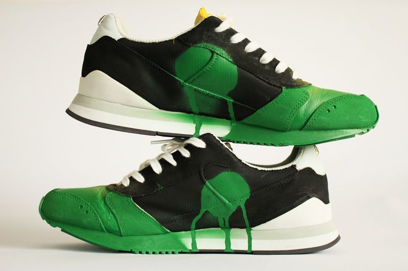Prerábka tenisiek "na zeleno". Maľované kvalitnými farbami na textil. Viac o prerábke a ako vyzerali tenisky predtým tu. Cena len za maľbu, tenisky treba dodať. Maľba je vhodná len na látkové alebo plátené tenisky.